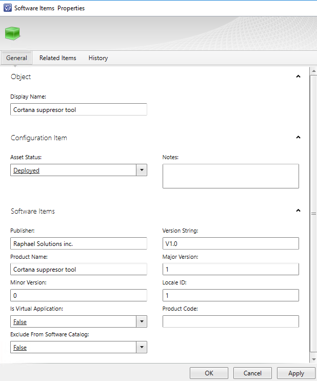 Next, create a License object in SCSM for the previously created Software Asset and add the Software Asset to the License object on the SCSM Form:
